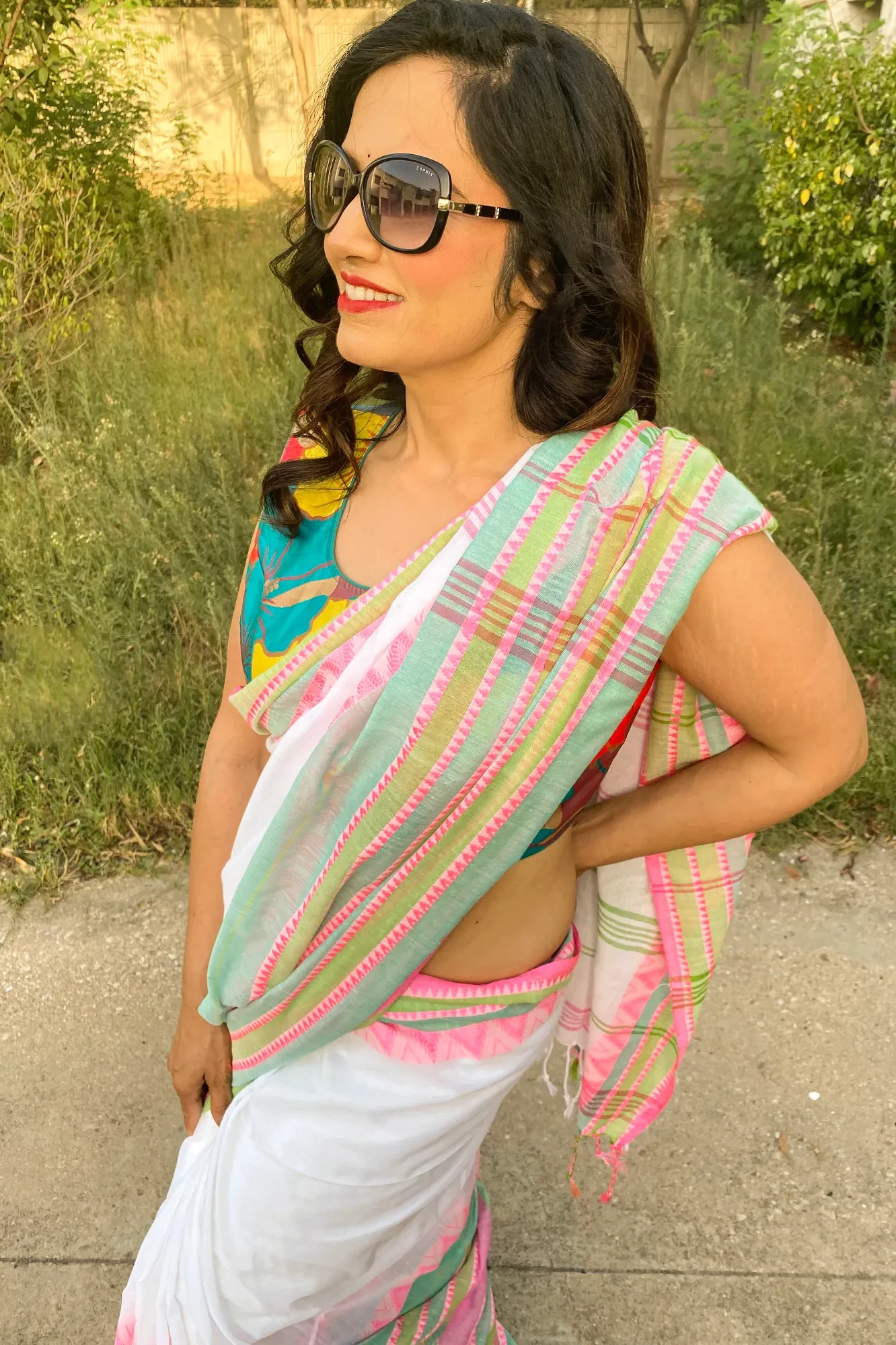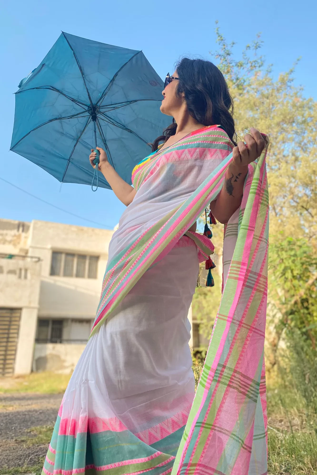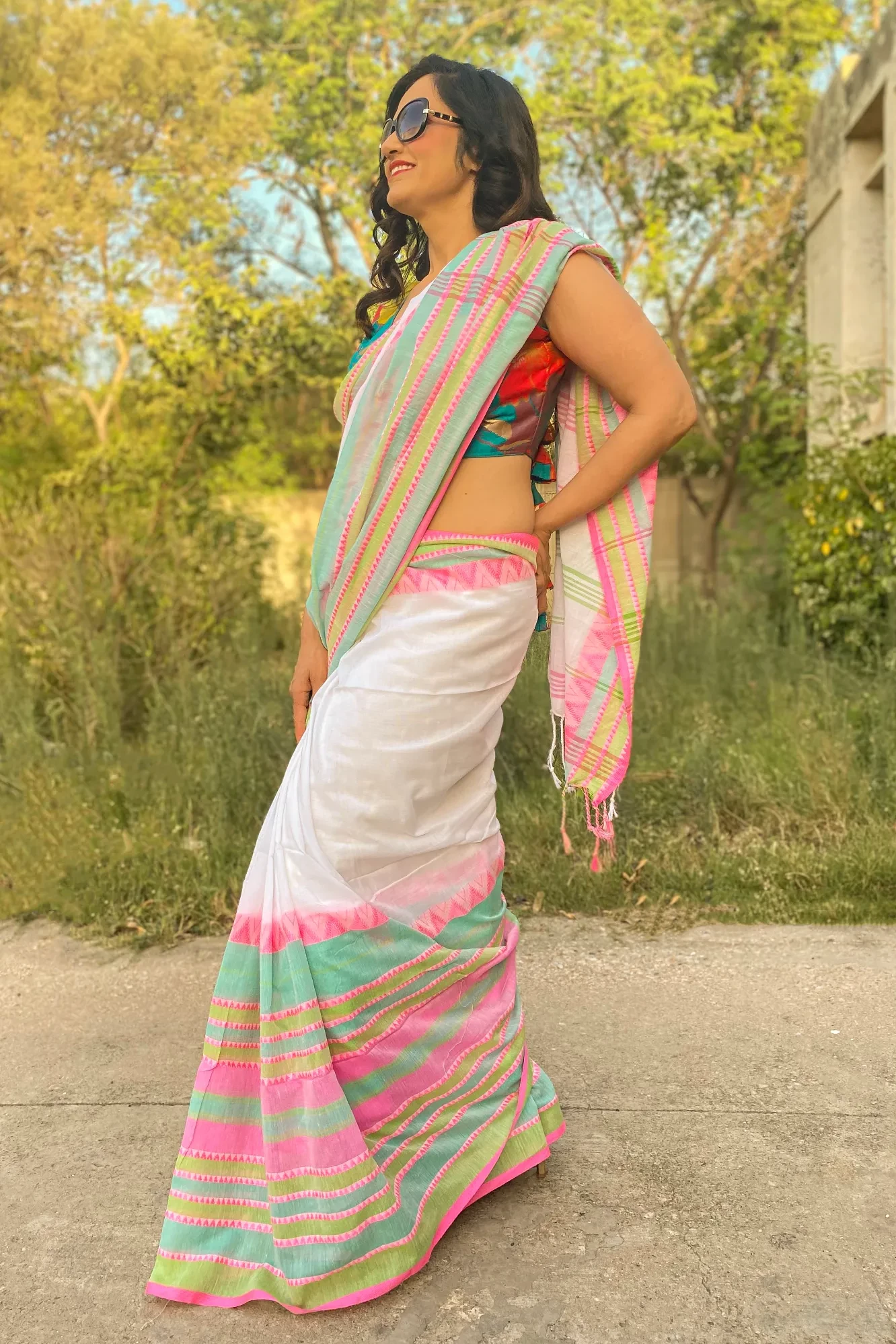 Blouse showcased in the images is from our in-house wardrobe and has been used only for styling purpose
