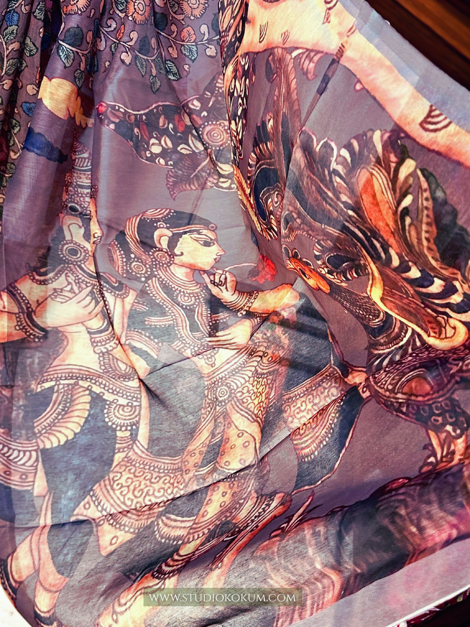 Chitra : Kalamkari Printed Chanderi Saree with Blouse Piece