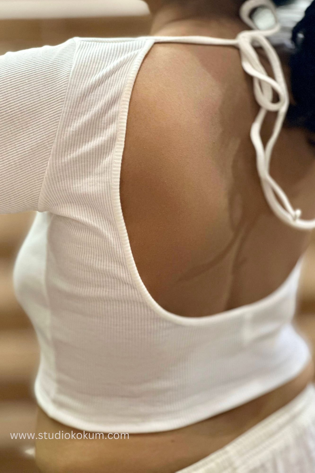 Full Sleeves Stretchable Back Strings Blouse in White Colour