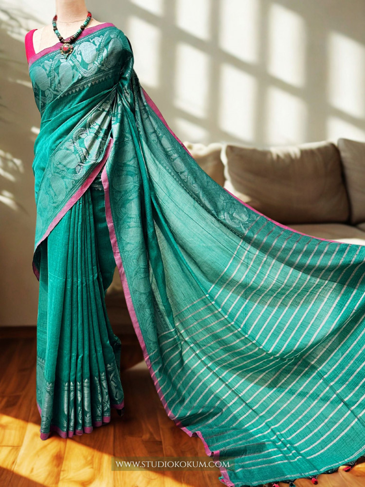 Noorani - Light Teal Colour Cotton Banarasi Saree