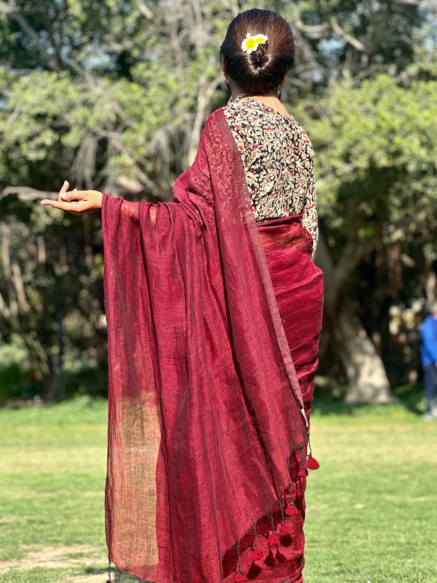 SUVARNA : MAROON HANDWOVEN LINEN SAREE COMES WITH ITS OWN SUVARNA LINEN BLOUSE