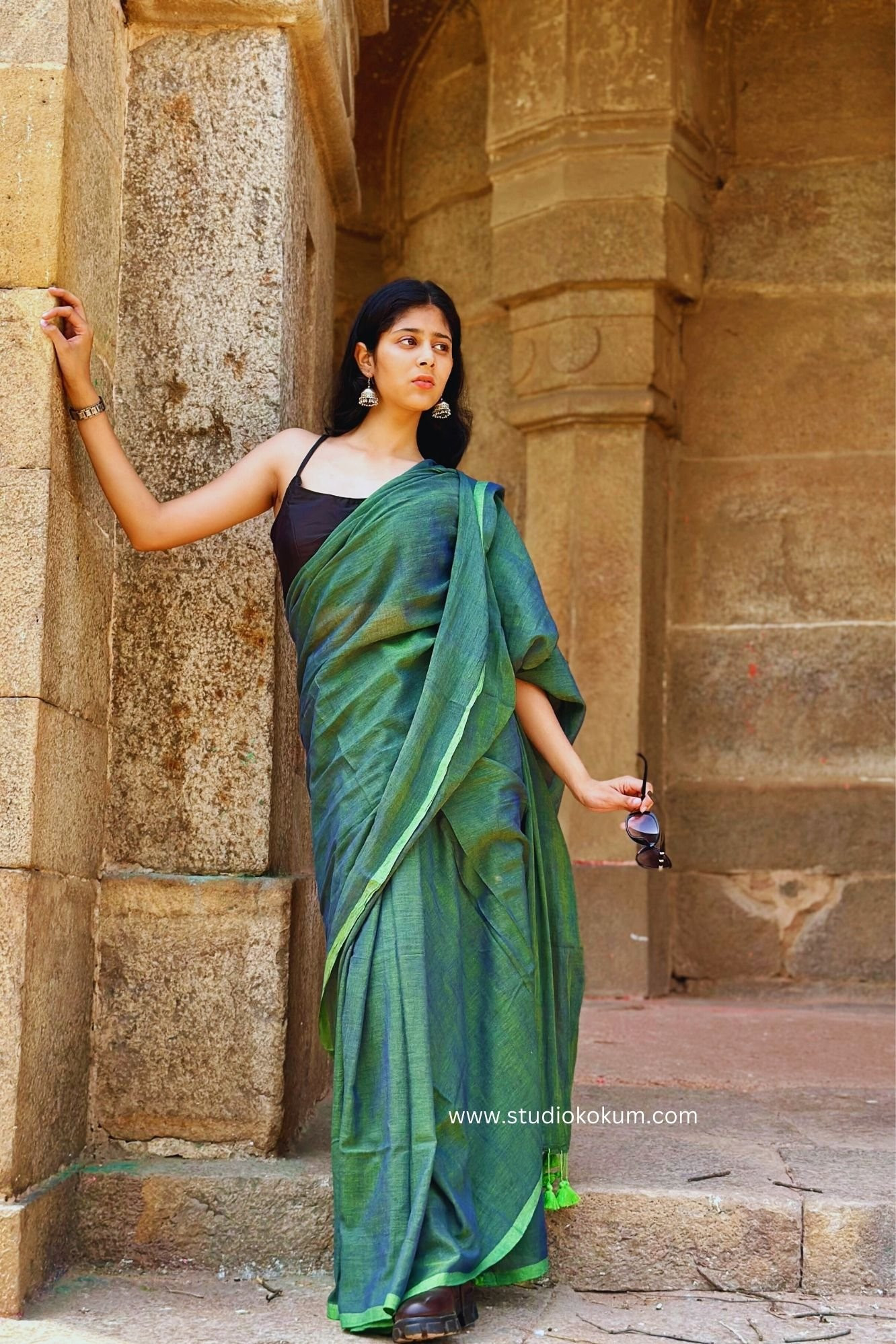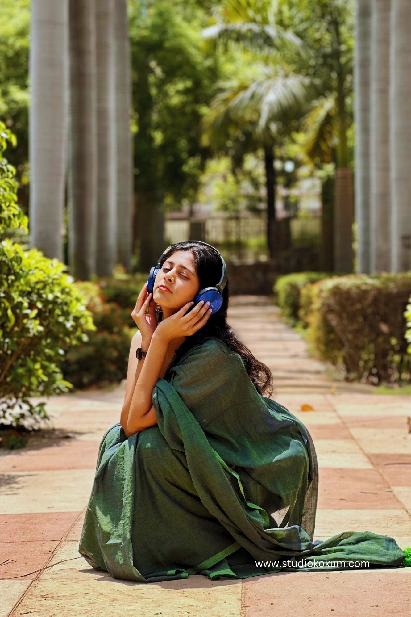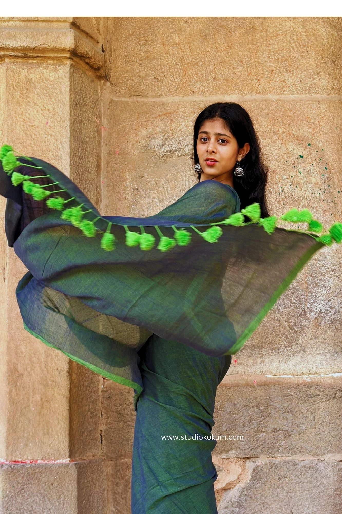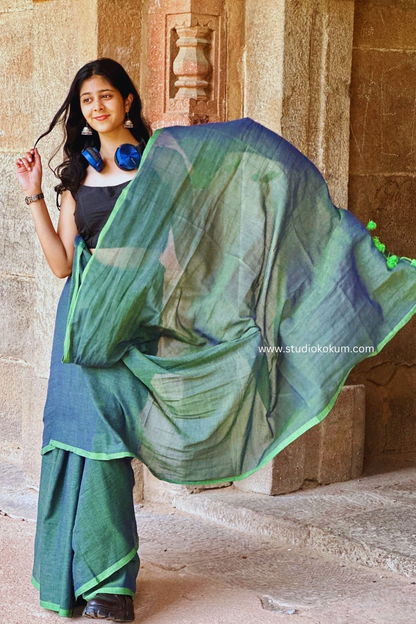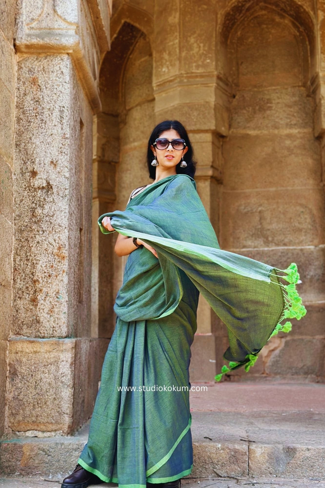 Urvi : Olive Colour Soft Mul Cotton Saree