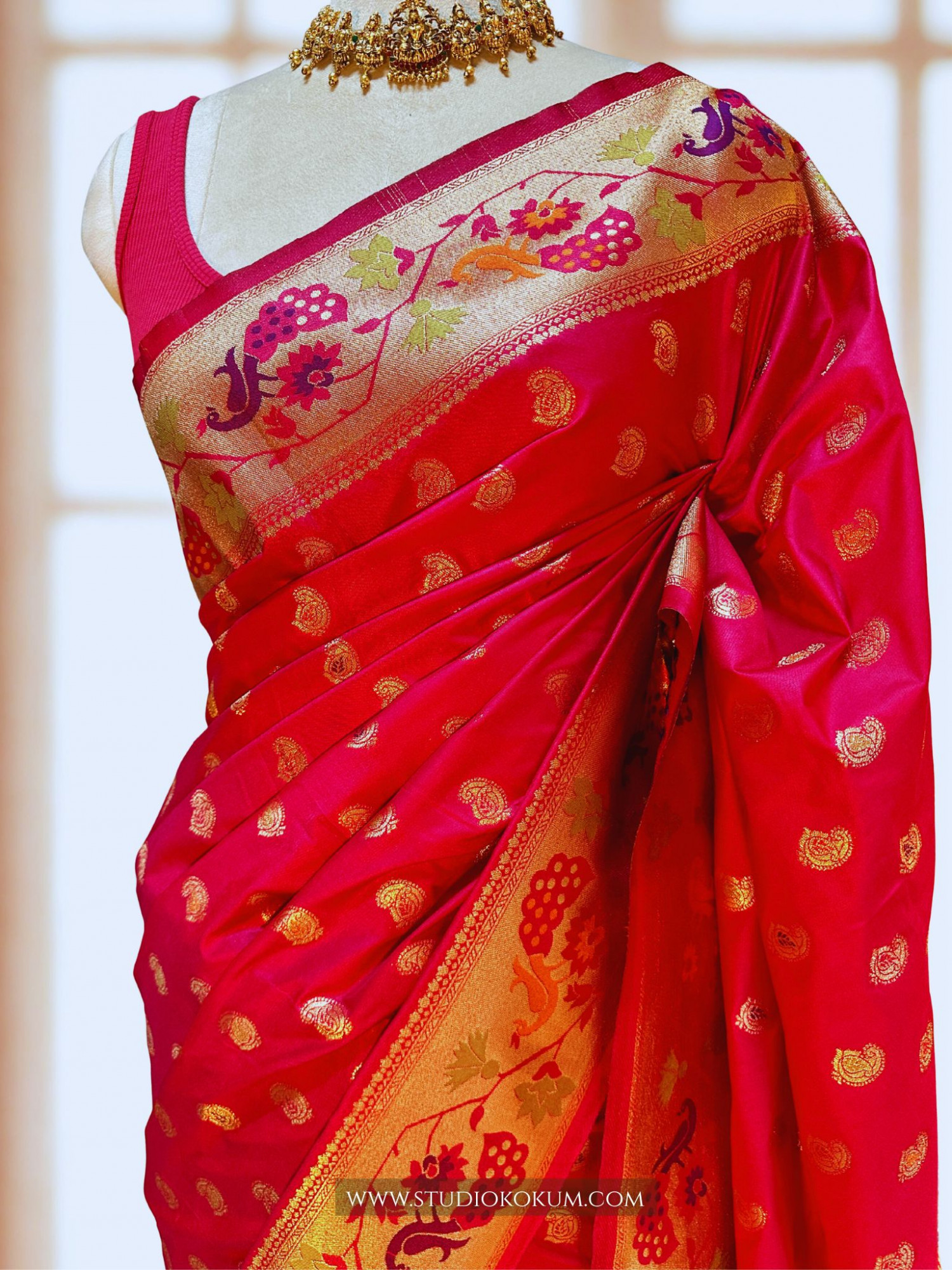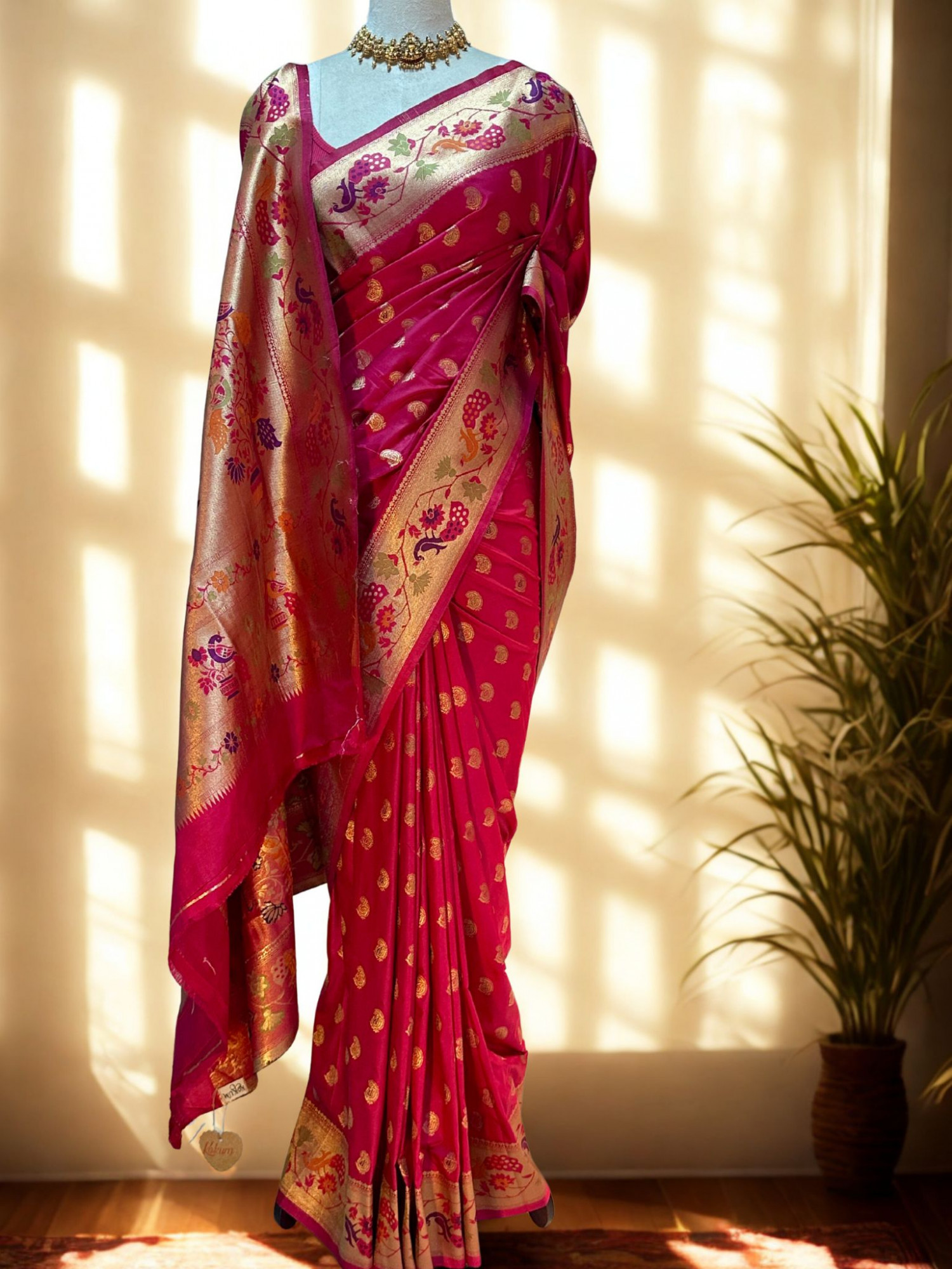 Featuring Zoha, Magenta Pink Paithani Silk Saree (with full zaree weaving) in soft silk base.